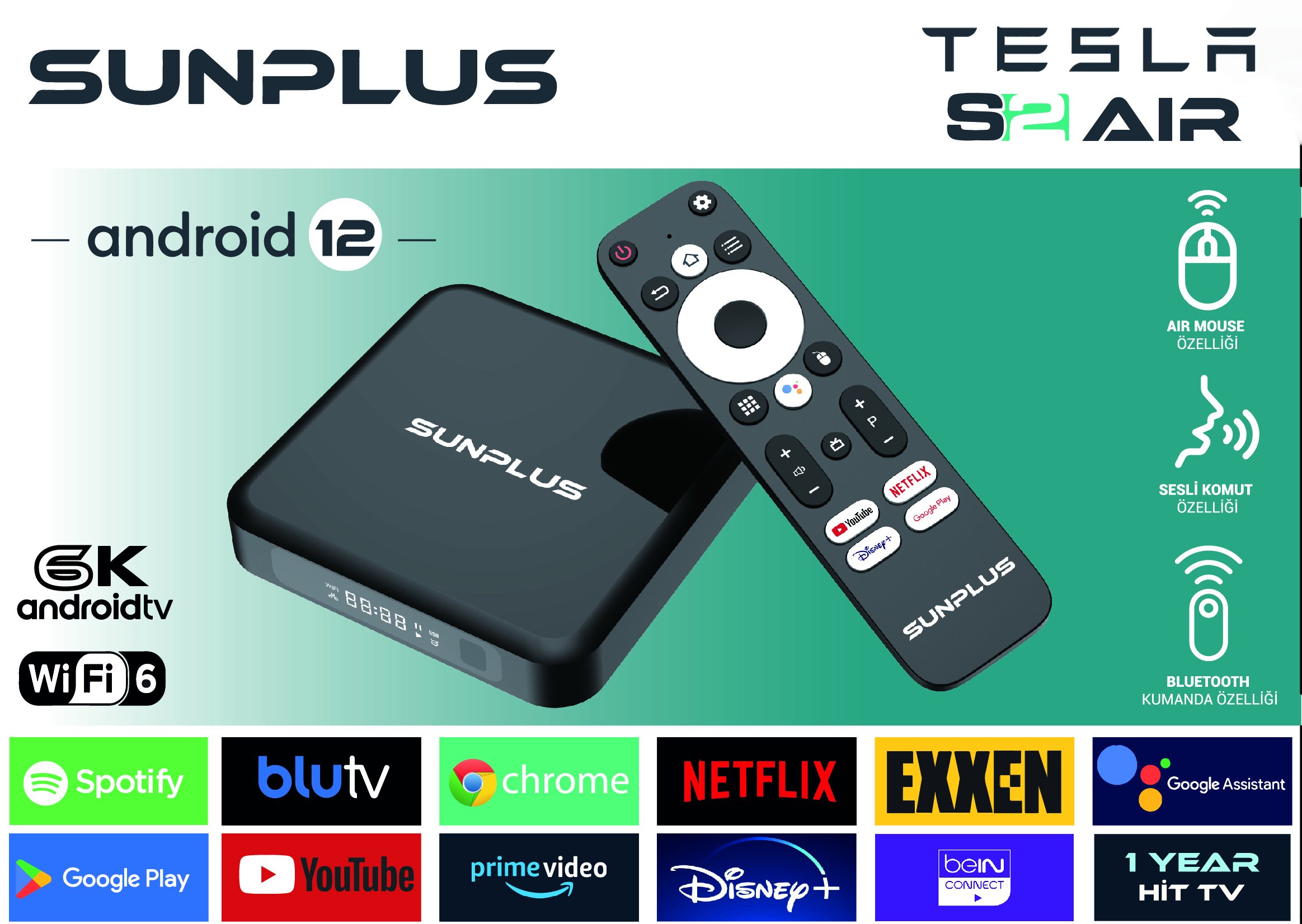 •Ses komutlu destekli Google kumanda (hey Google)